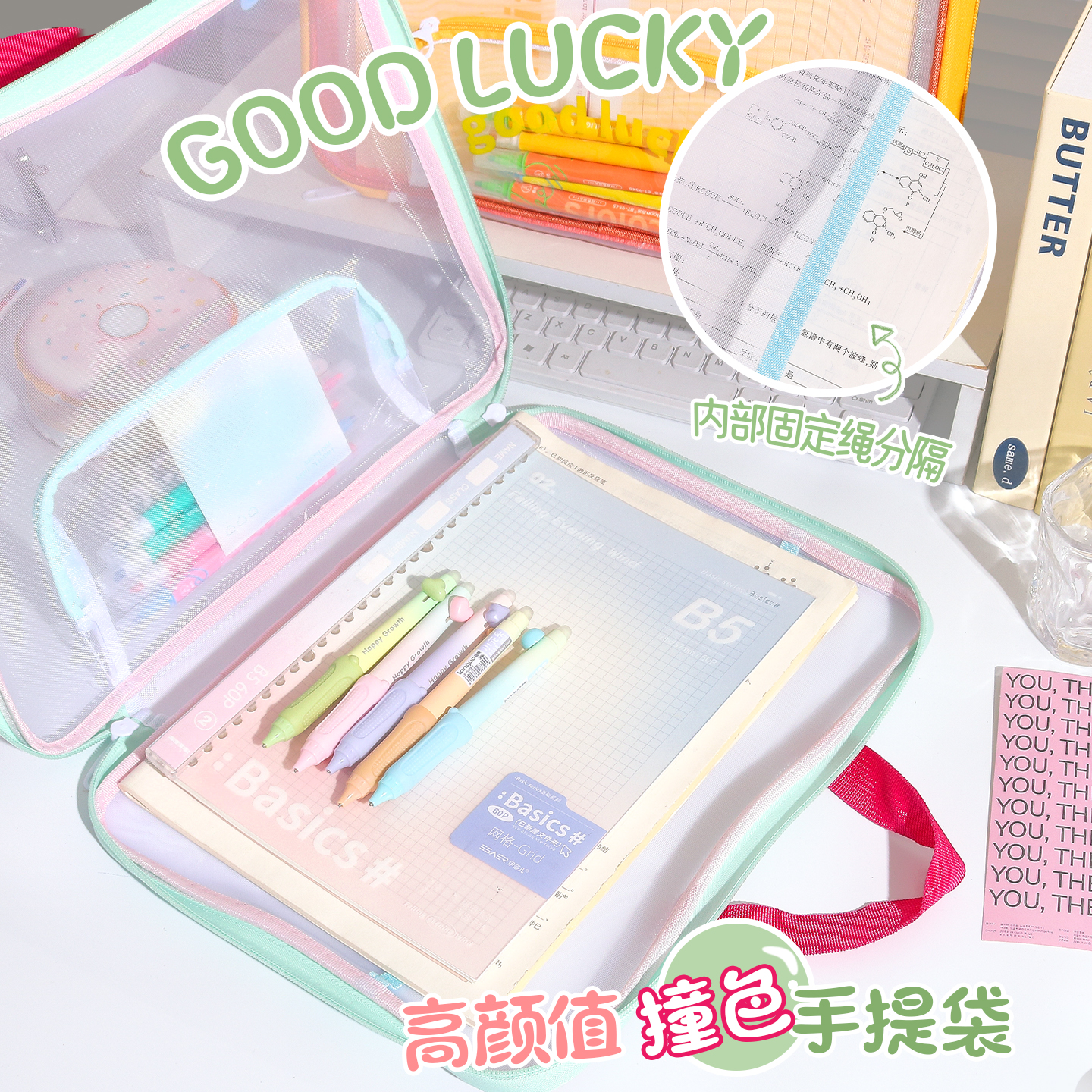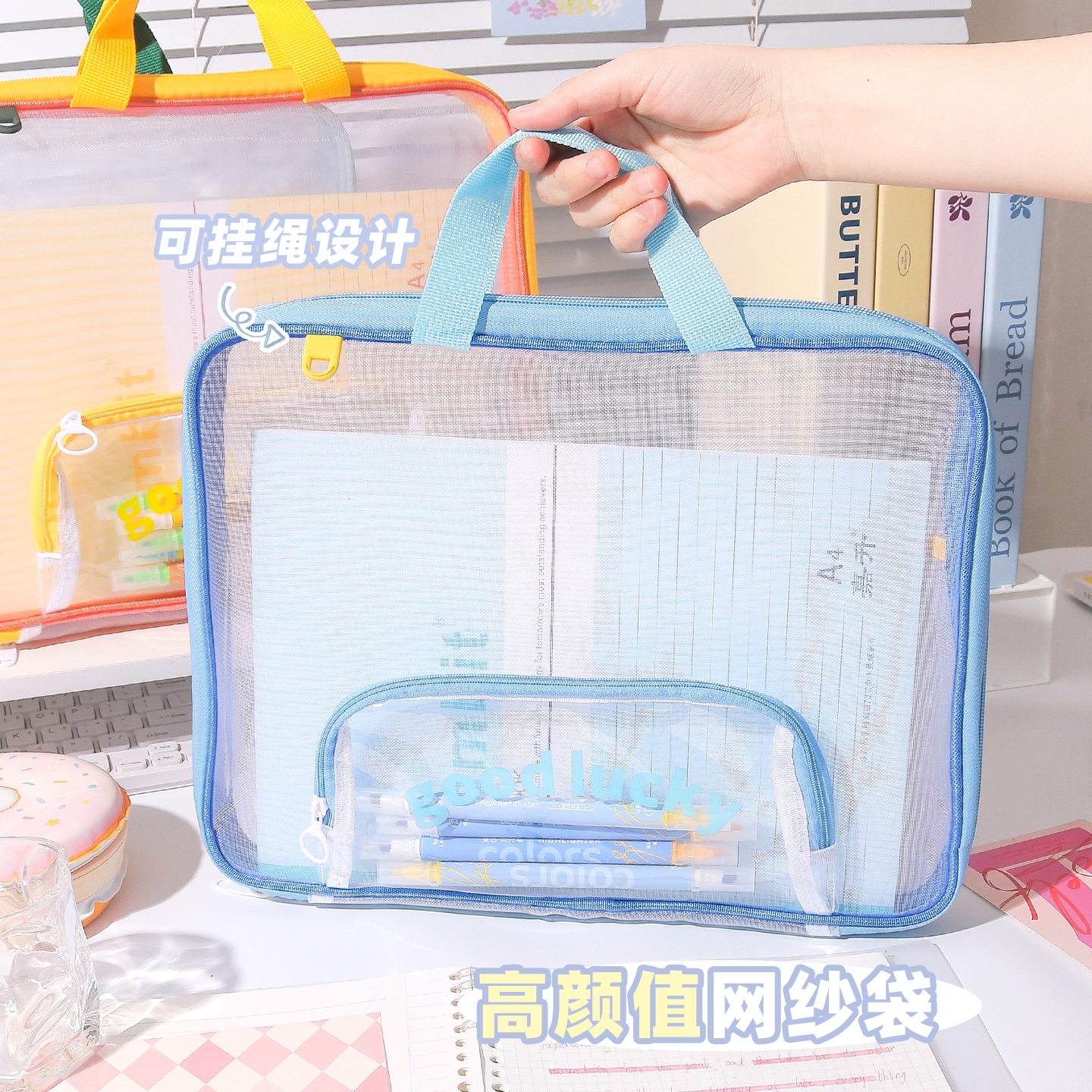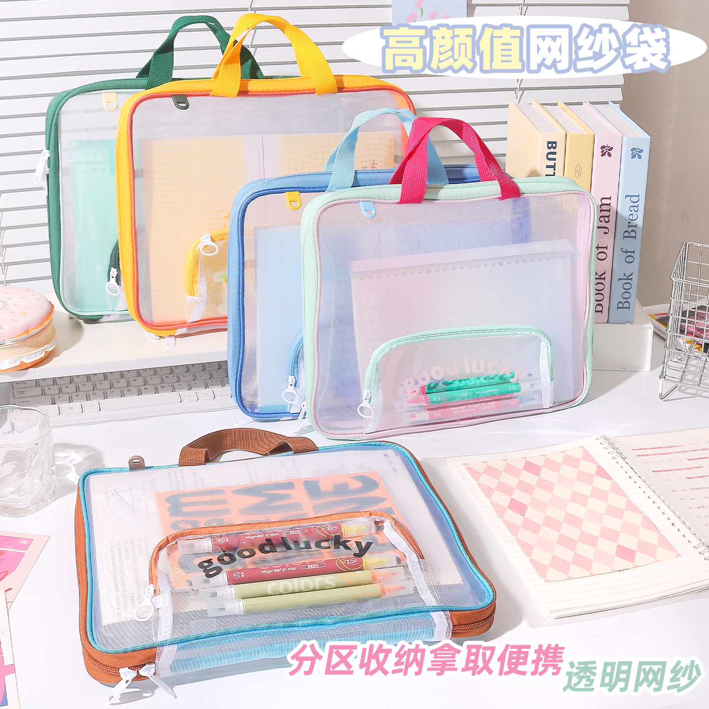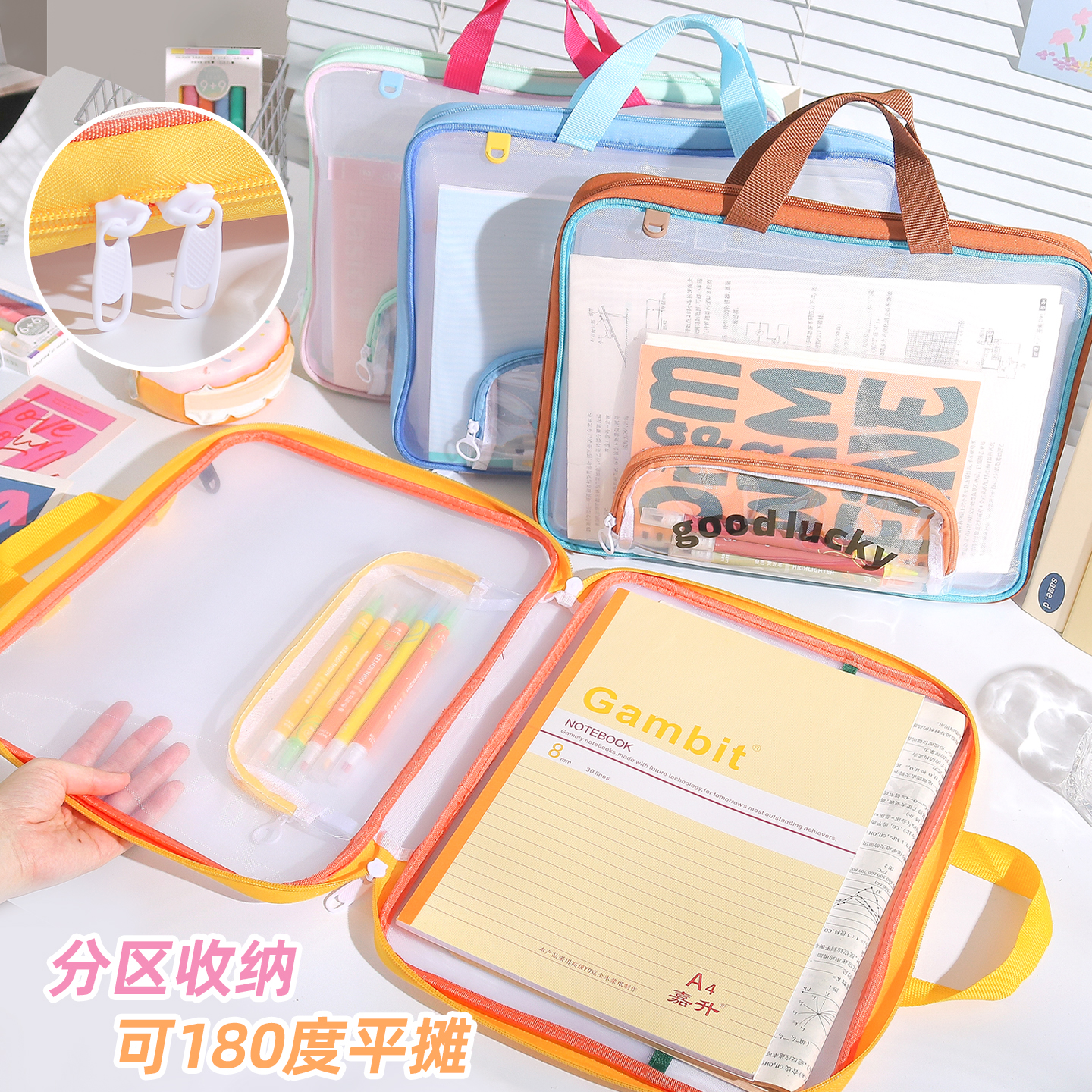 This contrast color retro horizontal file bag is made of PE material, featuring a double-layer design with a zipper mesh structure for reasonable partitioned storage, which can easily hold books, stationery and other school supplies. The portable style is suitable for primary and junior high school students, and the retro contrast color appearance combines beauty and practicality, making it a great storage partner for campus study.