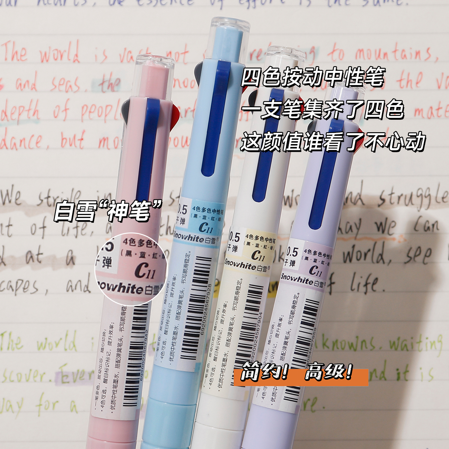 Elevate your writing experience with this INS-style 4-color retractable gel pen! Boasting a 0.5mm smooth bullet tip and quick-drying ink, it eliminates smudges and messy lines. With four vibrant colors in one pen, it’s ideal for students, office workers and journal lovers. The minimalist design is not just stylish but also functional—anti-roll pen clip keeps it secure, making it your go-to writing tool!
