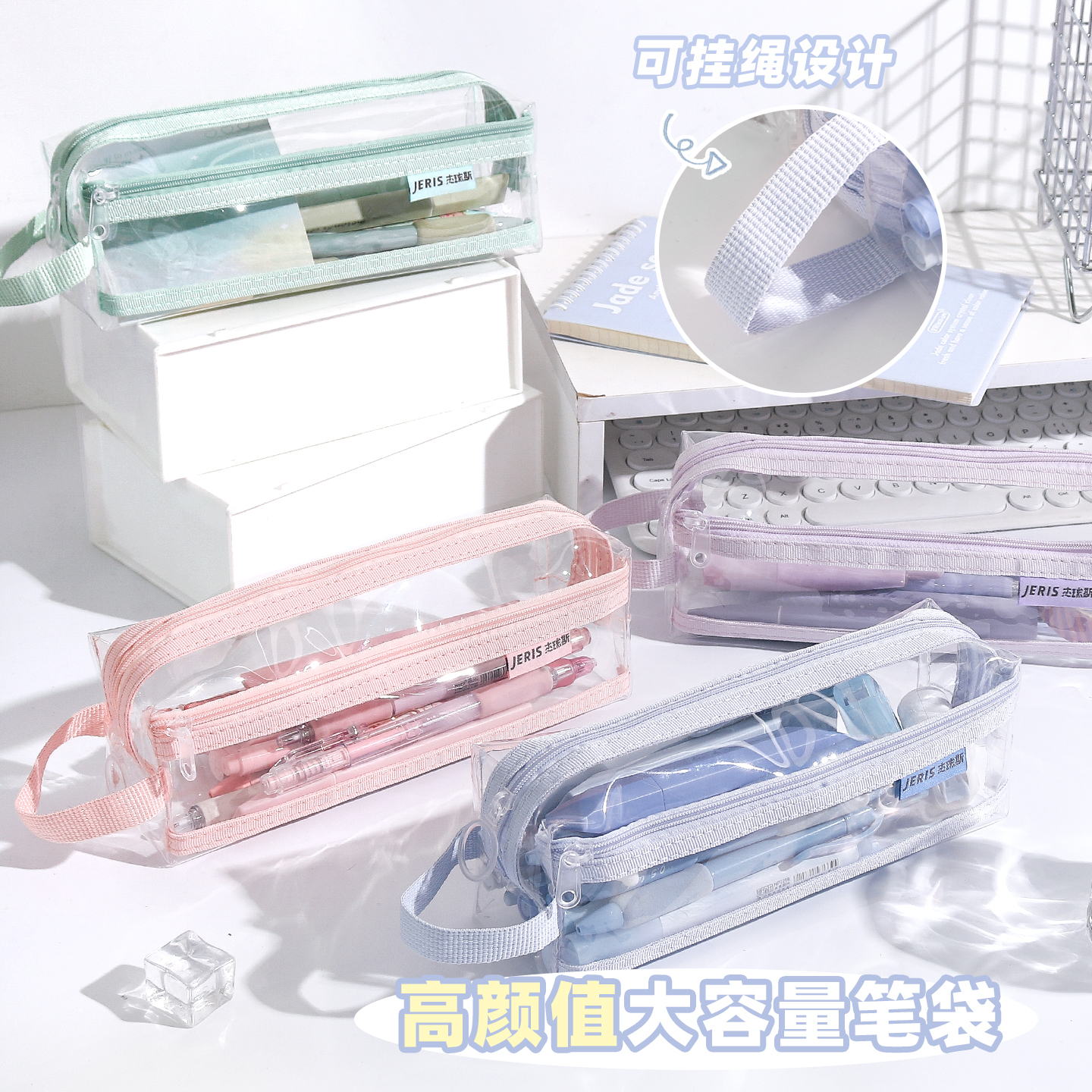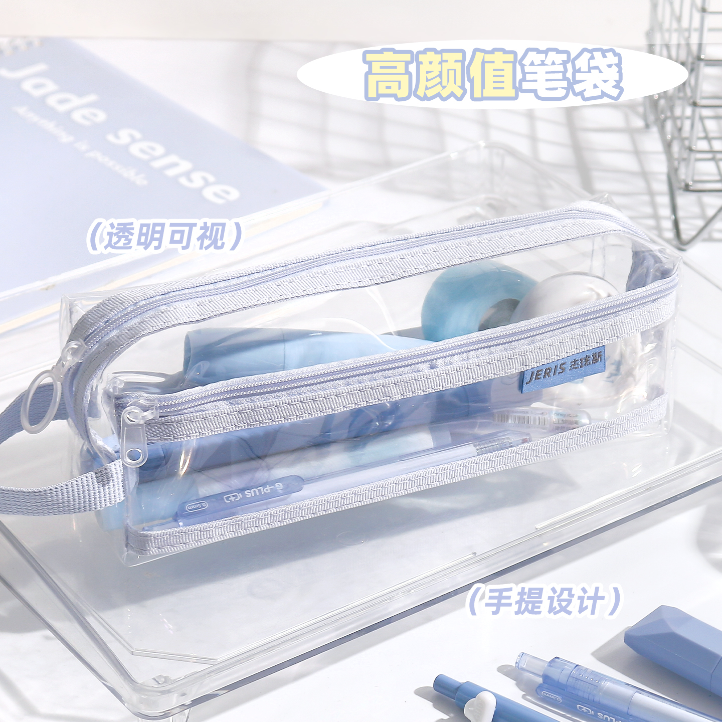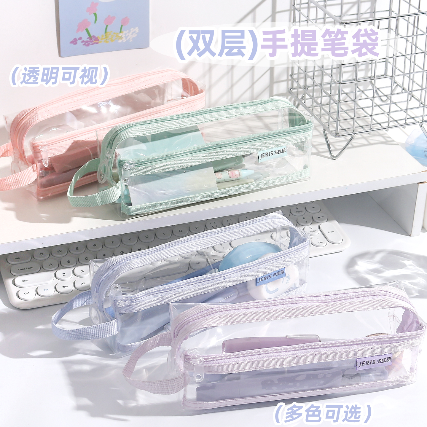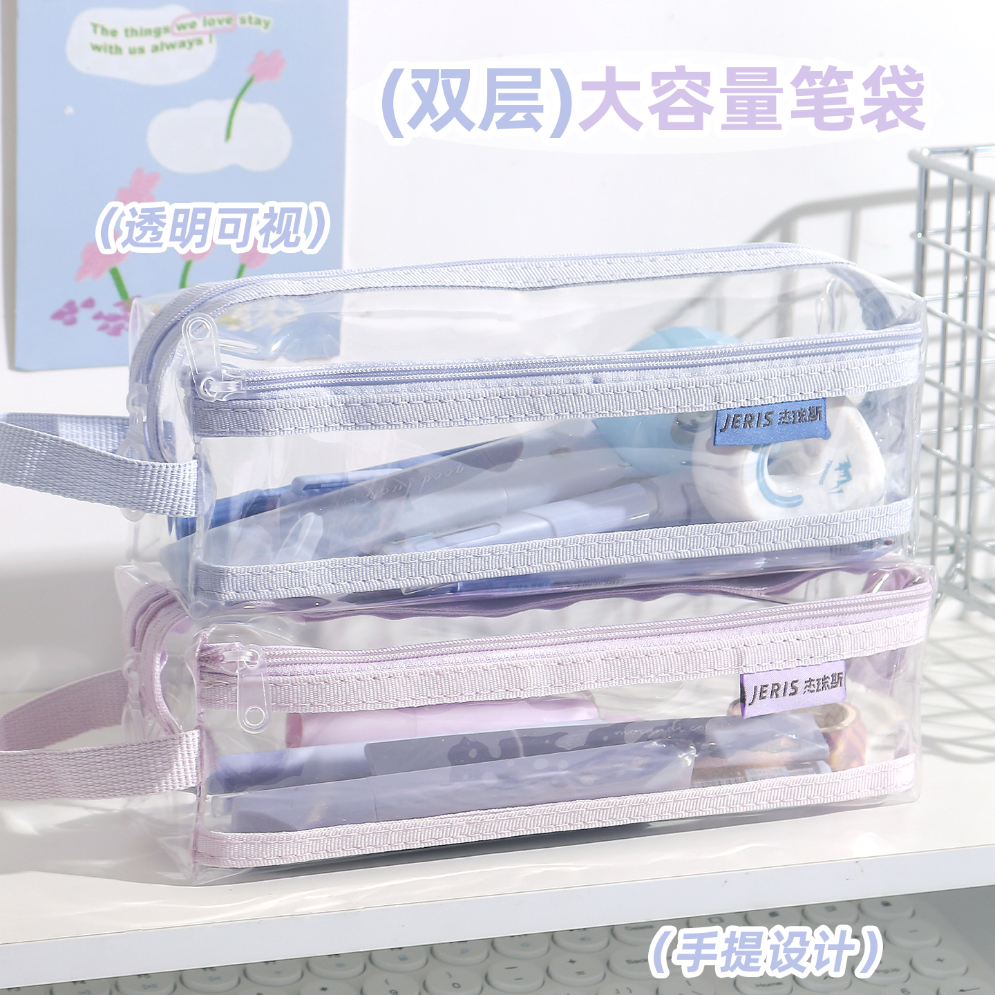 This clear pencil case features a double-layer structure and a portable handle, offering ample space to organize all your stationery effortlessly. Made of premium waterproof PVC material, it is wear-resistant and durable, making it an ideal choice for daily school, office, and travel use. The transparent design allows you to see all items at a glance, while the smooth zipper ensures secure storage. Available in multiple sizes and patterns, it suits both students and office workers perfectly.