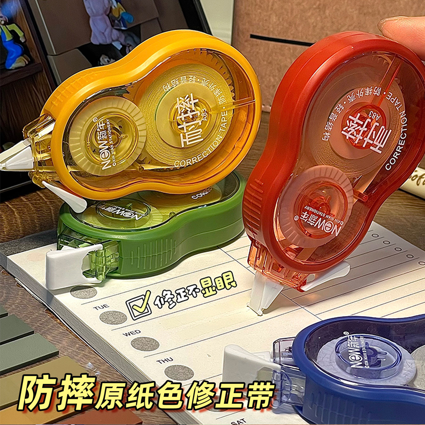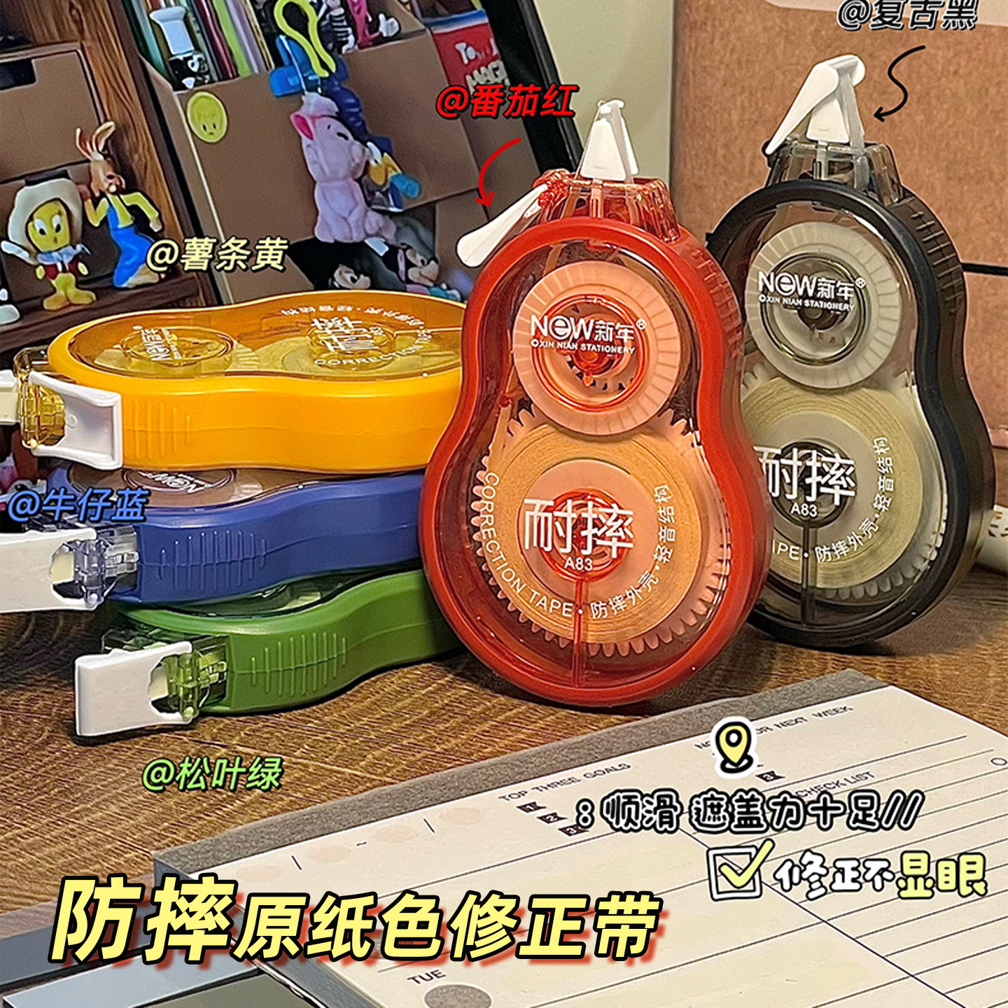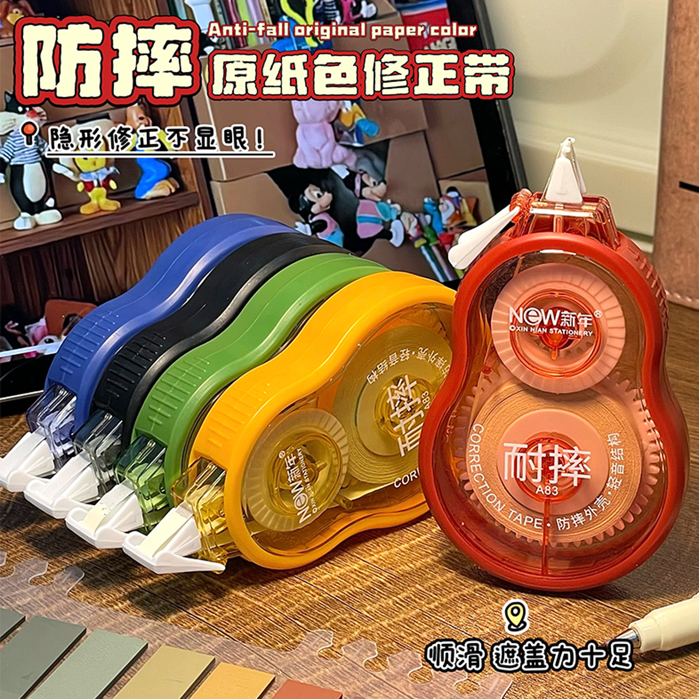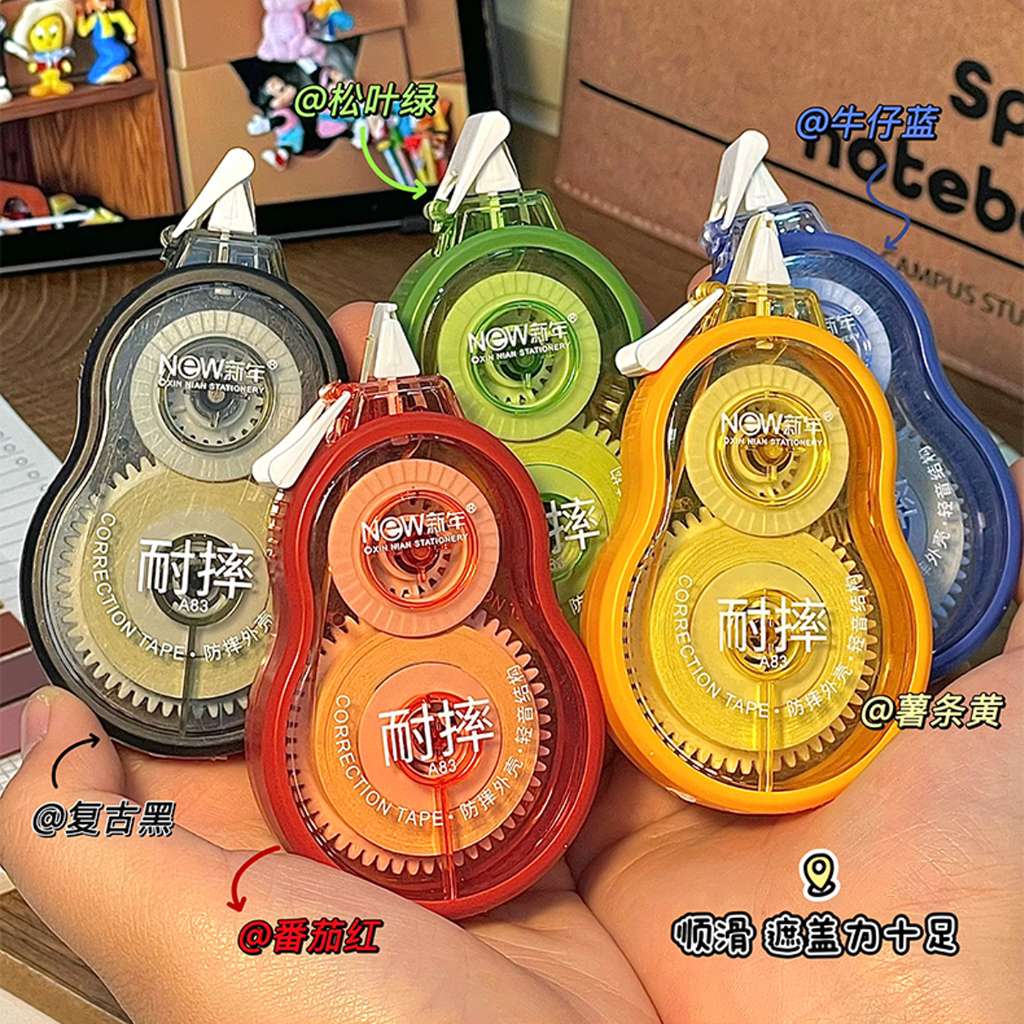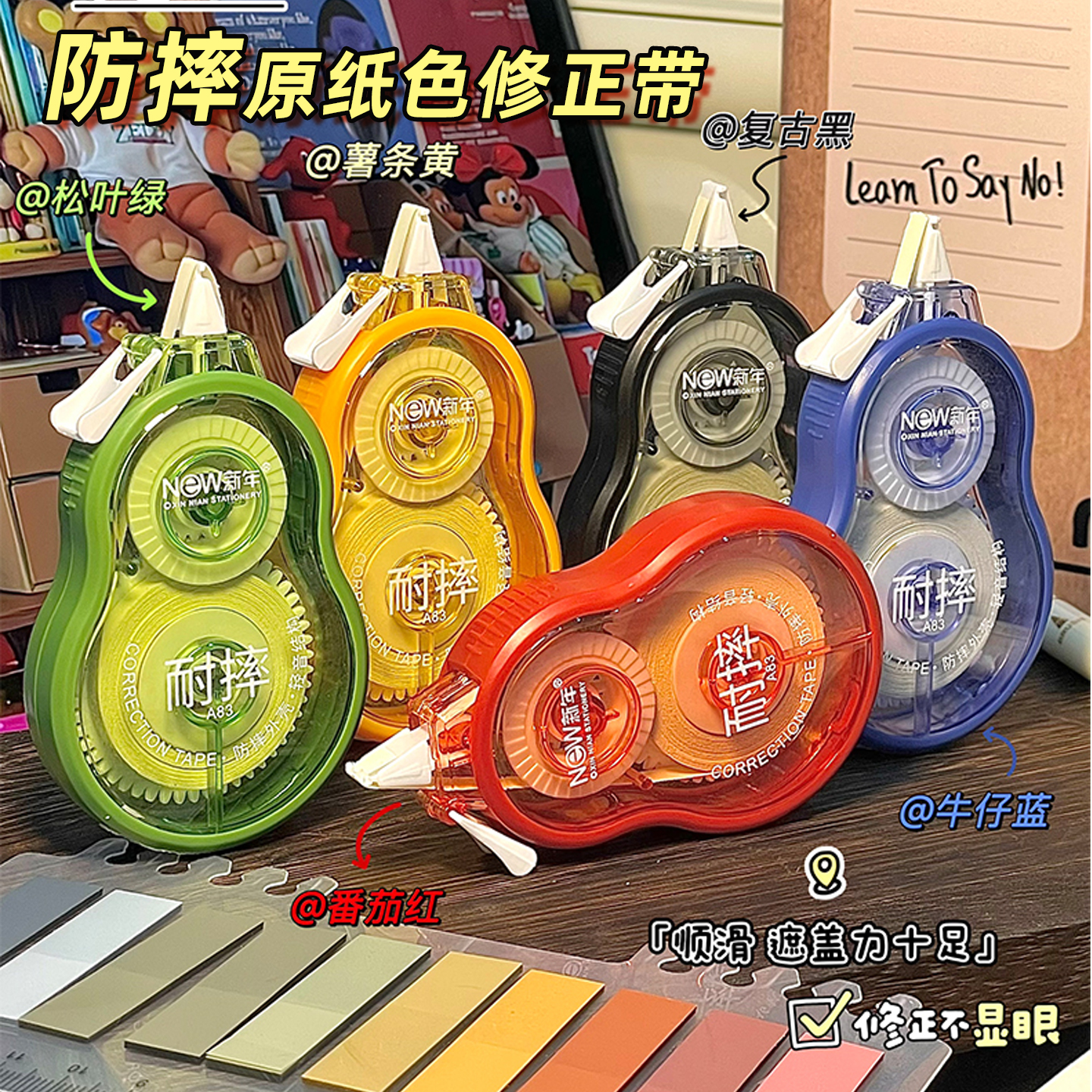 This vintage shockproof quiet correction tape features a creamy yellow refill that blends seamlessly with notebook paper, eliminating the awkward contrast of traditional white refills. Engineered with a drop-resistant plastic casing, it withstands accidental falls from desks or backpacks, making it ideal for busy students and office workers.