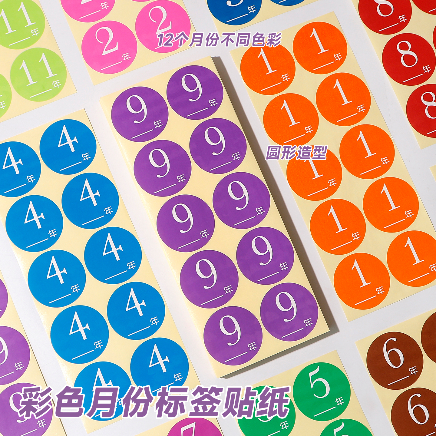 These 25mm circular self-adhesive monthly number stickers are designed for efficient classification and organization of files, inventory, documents, and stationery. Covering numbers 1-12 corresponding to the 12 months of the year, they feature bright, distinct color coding to differentiate months and seasons easily.